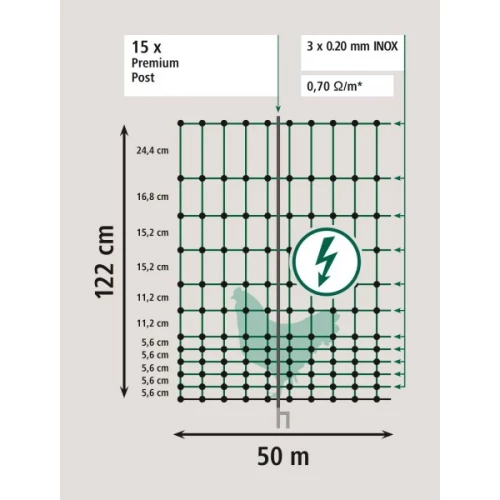 • Den smale maskevidden i den nedre delen av nettet gjør disse nettene ideelle for høns, gjess og kalkuner, samt for lam.