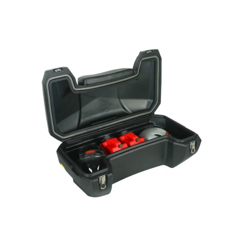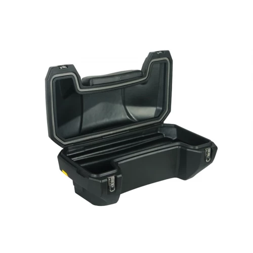 Med denne bagasjeboksen får du muligheten til å ta med deg verktøy, hjelm, hansker og annet nødvendig utstyr. Denne modellen er utstyrt med en lås for ekstra sikkerhet og er konstruert av solid plastmateriale for langvarig bruk. I tillegg har den en polstret ryggstøtte for å sikre økt komfort under kjøring. Monteringen av boksen bak på ATV-en er enkel, takket være de medfølgende u-festene som gjør det mulig å feste den sikkert til grinden. Med et imponerende volum på 96 liter og målene 43,5 x 54 x 96 cm, gir denne bagasjeboksen rikelig med lagringsplass for dine behov.