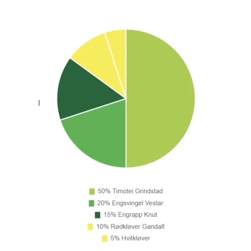 En vinterherdig og allsidig kombinasjonsblanding med kløver og yterike sørlige sorter. Passer godt og brukes mye i hele Sør-Norge. Inneholder både engrapp og hvit- og rødkløver, noe som gjør den godt egnet til produksjon av både surfôr og høy og kombinasjoner slått/beite.