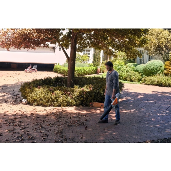 Med STIHL BGA 57, en del av det praktiske AK-systemet, blir det enkelt å holde gressplenen, gårdsplassen og innkjørselen fri for løv, gressavklipp og annet skitt. Denne batteridrevne blåseren er ideell for mellomstore områder, og den gir deg også muligheten til å tørke bilen din etter vask på en rask og effektiv måte. Med sitt justerbare blåserør og ergonomiske design, er denne blåseren enkel og behagelig å bruke, selv over lengre perioder. Den passer perfekt til privat bruk og er spesielt egnet for støysensitive områder.