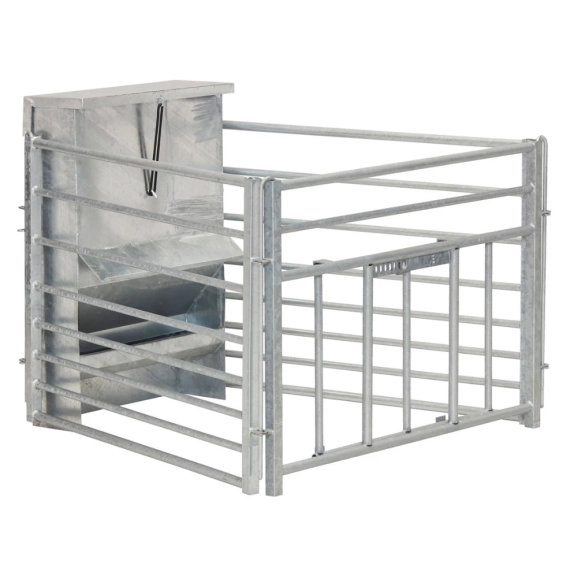 Kraftforautomat som krever liten plass men rommer likevel hele 70kg. Den er ypperlig til oppdrett av kopplam, og den kan påmonteres sorteringsgrinder som holder større dyr ute. Solid varmgalvanisert beholder og tett lokk, som gjør automaten fin også til bruk ute. Automaten er enkel og lett å renholde og dermed er det lett å holde nede smittepress.