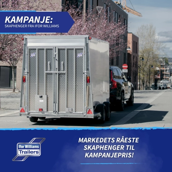 Med sin aerodynamiske front utnytter Ifor Williams skaphengeren lasterommet maksimalt samtidig som drivstofforbruket holdes nede. Frontdøren gir enkel tilgang til lasten.