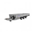 Bygget på tre aksler og utstyrt med 12" hjul som standard, sikrer denne flathengeren stabilitet og pålitelighet under transporten.