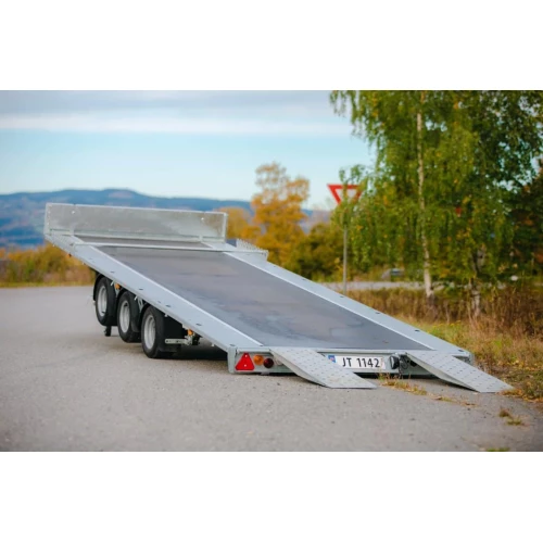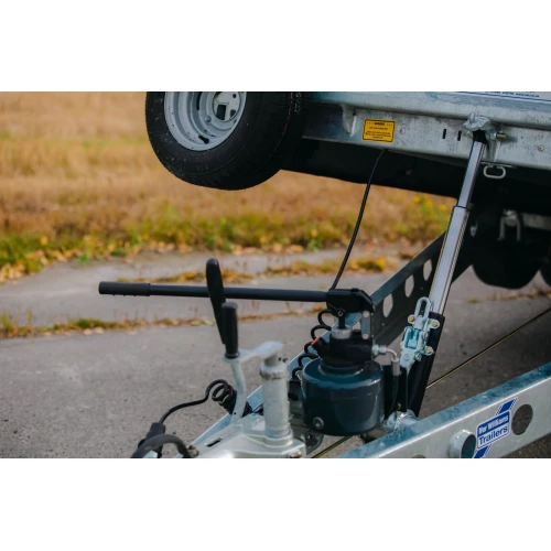 TB Tiltbed-serien er kjent for sin allsidighet og kombinerer fordelene med en flat henger med praktisk vippefunksjon. Med 1 stk HeavyDuty hydraulisk stempel og manuell betjent pumpe, er disse hengerne klare for en rekke kjøretøy og formål.