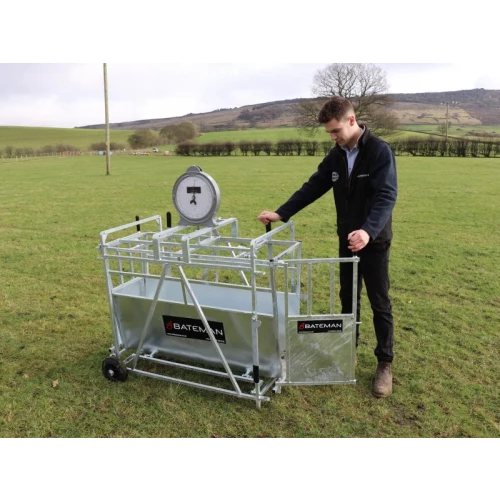 Bildet viser den mekaniske versjonen og leveres med en Salter vektklokke med kapasitet på 100 kg. Kan leveres med digital vektklokke med kapasitet på 300 kg. Leveres også med Tru-test elektronisk vekt og display samt lesestav hvis det er ønskelig. (be om pris på dette)