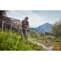 Den leveres komplett med et trimmerhode, en krattkniv og et sagblad, slik at den kan tilpasses ulike oppgaver.