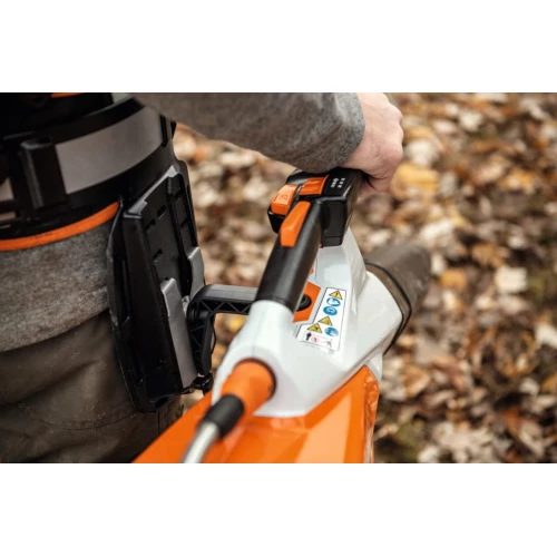 Denne batteridrevne løvblåseren er ikke bare kraftig, men også behagelig stille og lett, ideell for profesjonelle brukere. Perfekt egnet for områder med lav støyprofil, som bykjerner. Den unike designen og vinkelen på blåserøret gjør den skånsom for både håndledd og armer, selv når du bruker boost-funksjonen. Med et enkelt knappetrykk kan du justere lengden på blåserøret, slik at den passer perfekt til dine arbeidsoppgaver. For lengre perioder med sammenhengende bruk anbefales det spesialtilpassede bæresystemet Comfort (ekstra tilbehør), som avlaster håndledd og armer, slik at du kan spare krefter. Blåseren kan enkelt festes i bæresystemet, og du kan raskt bytte mellom å bruke den håndholdt eller hengende.