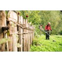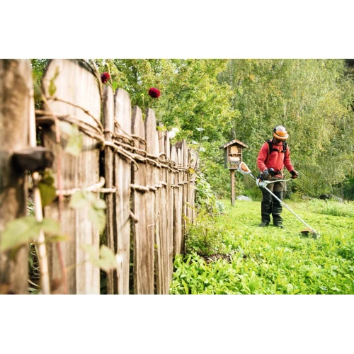 Robust batteridrevet trimmer med kraft og enkelhet i fokus, ideell for effektivt arbeid på store flater med tykt gress. Standardutstyrt med et trimmerhode som har en klippediameter på 420 mm, men kan også tilpasses med metallverktøy etter behov. Trimmeren har tre forskjellige effektinnstillinger og et justerbart styre for optimal komfort.
