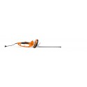 Denne elektriske hekksaksen er både kraftig og stillegående, med en imponerende 500 watts motor. Perfekt egnet for presis formklipping av hekker og beskjæring av tynne grener. Med et justerbart dreiehåndtak i 5 trinn, er den designet for å gi optimal arbeidskomfort. Sikkerheten er også ivaretatt med integrert kuttbeskyttelse, påskrudd føringsvern og kabelstrekkavlastning. Andre praktiske funksjoner inkluderer en rekkeviddeforlenger på håndtaket og vibrasjonsdemping, som bidrar til jevnere drift. Med kniver som er slipt på en side, er denne hekksaksen ideell for å holde hekker og busker rundt huset i perfekt form.