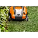 Batteri og lader selges separat. Denne kompakte enheten er ideell for mindre og vinklede plener, og dens trinnløst justerbare arbeidsdybde og lette hjul gjør arbeidet enkelt og håndterlig. Transport er enkelt, og den tar minimalt med plass ved oppbevaring.